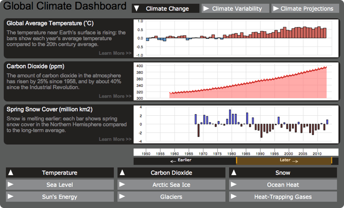 NOAA report coverOne interesting aspect to the change in our climate was mentioned in the NPR article. It quoted a Texas A&M climate scientist, Gerald North, who said, “This thing (sea level and temperature) doesn’t just go up continuously, but is kind of like a ratchet. It goes up, then it steps back a little bit, then it goes up some more.” Perhaps this is one of the reasons that some people are unsure if the climate is actually changing or not.