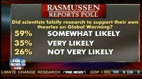 Doesn’t this say more about Fox devotees than it does about the truth about climate change? You’d think Fox would be too embarrassed to show it!