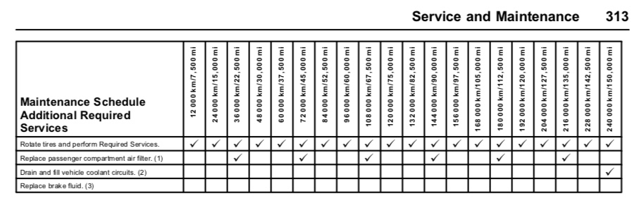 Yes, you’re reading it correctly. The only scheduled maintenance for the Bolt EV, through 240,000 miles, is tire rotation and cabin air filter replacement. At 240K miles, it is recommended that the fluids be replaced (battery coolant).