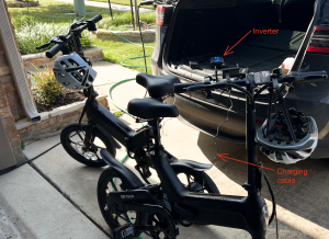 We also bought an inverter from Amazon that allows our Tesla to recharge our eBikes, so we’ll be able to charge them at our campsite instead of running into town every time we need to recharge. What a time we live in!
