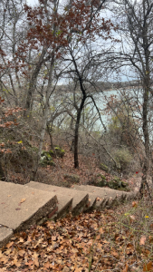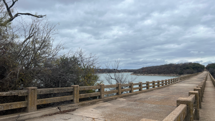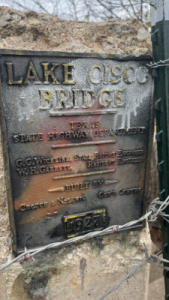 Once we returned to the parking lot, we noticed signs pointing to the “lake trail,” so we decided to check that out as well. Lake Cisco’s dam was on the near side of the lake, topped by an old bridge that is out of commission and marked with “No Trespassing” signs.