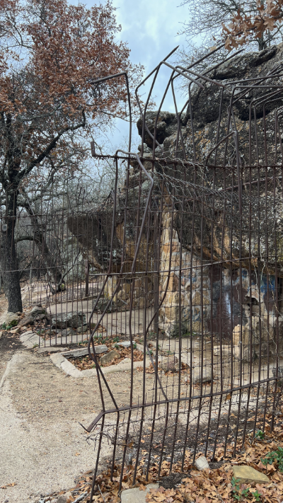We were heading for the “Old Zoo Nature Trails, in Cisco, Texas. The path goes right by the now defunct zoo, nestled in the woods, as well as a grouping a abandoned houses, an abandoned Country Club and a dam, topped with a bridge that is now closed. I am told the zoo was only open for 20 years, closing after one of its animals was poisoned. The day was overcast with heavy rain forecast for the evening.