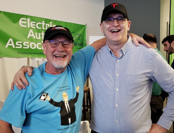 Many of my Volt and Bolt EV customers showed up, stopping by the booth to say hi and people, who have only known me from my blog or Facebook posts, did the same. James (in the image below) was filling out the TxETRA membership form and I recognized his name. I said, “I know you.” He looked up at me and recognized me for the first time, exclaiming, “You’re Buzz Smith!” It was a fun meeting, during which we laughed a lot!