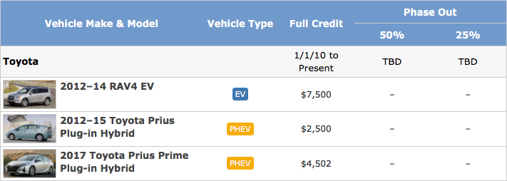 But wait! There’s more: The Prius Prime, due to its smaller battery pack, does not get the full $7,500 in tax incentives that the Chevys get. The Prius gets its owners a tax credit of only $4,502. That reduces the effective cost of the four vehicles as follows: