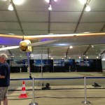 The first person I talked to was a tall young man named Peter. I asked about the turbulence and landing. He said the reason they landed around 1:00 in the morning was that the airport traffic was shut down then, eliminating the worry of jet-induced turbulence. He said they normally have a limit of 5 MPH crosswinds for landing but that the DFW landing occurred in around 15 MPH crosswinds. Believe it or not, the Solar Impulse flies as high as 30,000 feet. Silly me. I had envisioned it at about 500 feet…