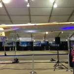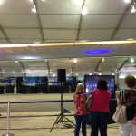 The morning was overcast and felt like rain would be coming soon when we spotted the hanger. The hanger was a huge tent and there were barricades as if they were expecting unruly throngs pushing to get in. The crowd was smaller than that by far. There were police everywhere and in some ways going through security felt like I was leaving on a jet plane myself. (Sorry. I had to. Big John Denver fan)