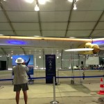 If you’ve been tracking the Solar Impulse Across America tour, I’m probably going to make you a bit jealous. The Solar Impulse landed at the DFW International Airport on May 23rd and made the plane available for public viewing. Here’s a great shot they took of the landing. When I heard about the public viewing, I went to their website for details. Unfortunately, all viewing times were sold out. It’s an odd use of the term “sold out,” since the passes were free. I placed my name on a reserve list, in case any more showings were scheduled and sent an email asking if they had any showings for the media or bloggers. Unfortunately they did not.