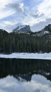 We arrived at our campsite a little ahead of schedule around 6PM. We put up the tent, offloaded some of the gear in the car and took a quick drive up to Bear Lake, just to see if the parking lot there was as crowded as it is in the summer (it is). Then it was down into Estes Park for Bonnie’s Avocado Margarita at Ed’s Cantina.