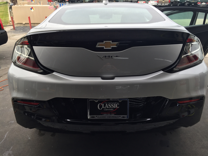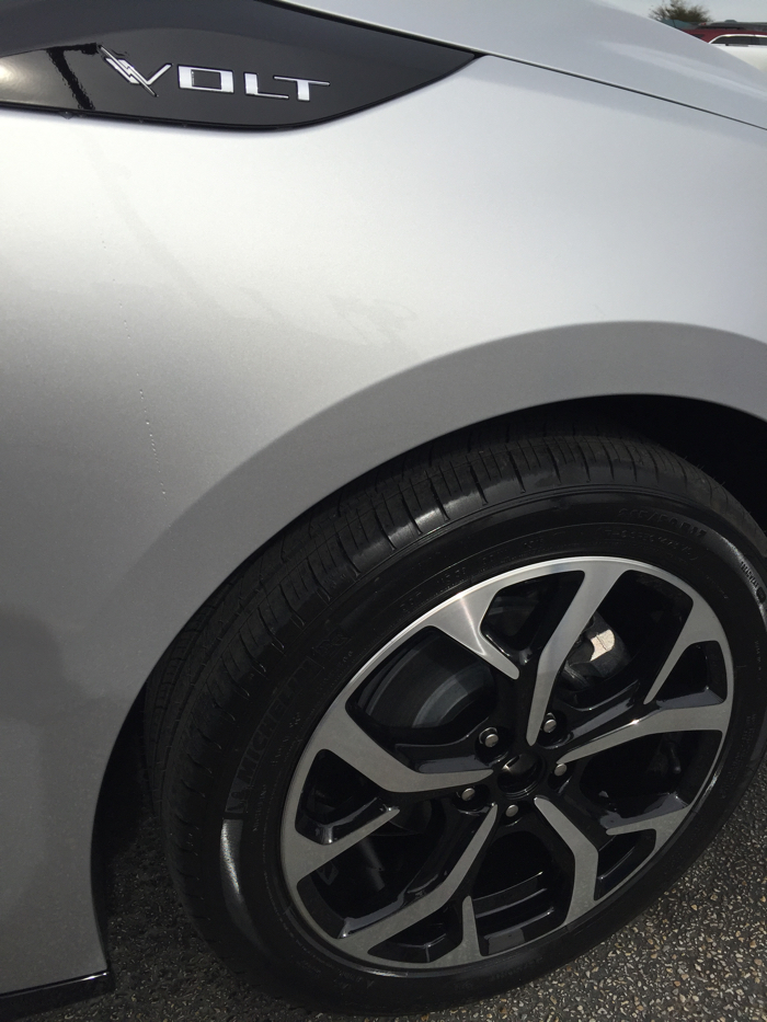 stock wheelI really didn’t like the stock wheels on the Premium Volt and I’m too cheap to pay for the upgraded wheels. Several of my coworkers had found a small company that powder coats wheels. I checked their wheels out and decided to make mine a glossy black. When the driver showed up to pick up my wheels, he suggested that, once powder coated, that his company skim cut the raised surfaces for contrast. He was so right!mod wheellogo-wheelrear viewfront viewdash
