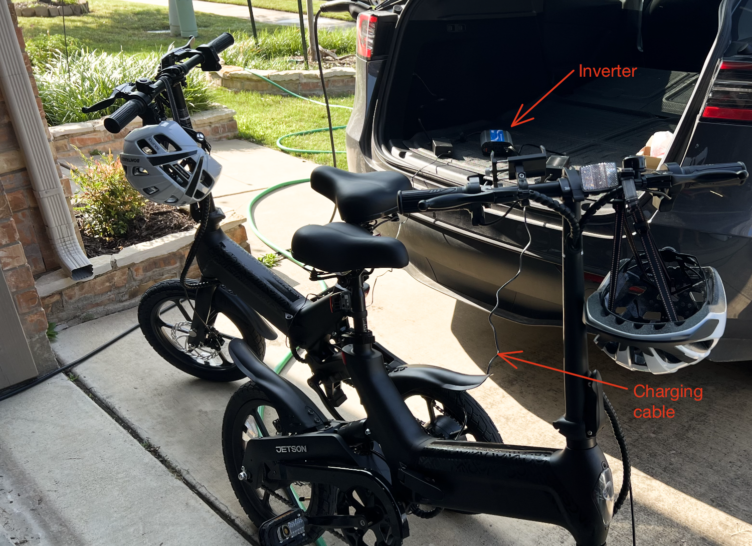 We are taking three EVs on this trip: our Tesla Model Y and two Jetson Haze folding electric bikes. We already have two full-sized eBikes, but they were going to be too cumbersome to carry with us. We opted for folding eBikes so we could store them inside the car, avoiding wind drag and possible range loss for our EV.
