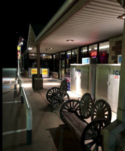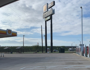 When we arrived at the chargers, located in a Shell service station / Subway sandwich shop parking lot at the intersection of I-20 and state highway 281, it was nighttime. There were no other EVs present. Bonnie had not yet been involved in recharging the Model Y, so I was able to show her something cool: At a Tesla Supercharger, you don’t open the charge port on the car. You just press a touch-sensitive sensor on the handle of the charger plug and the hatch on the car opens automatically. Arthur Clarke once said, “Any sufficiently advanced technology is indistinguishable from magic.” This certainly felt magical. When we arrived, we had about 65 miles of range left and were 65 miles from home. We could have gone for it, with Fort Worth having plenty of charging stations, but Bonnie (who doesn’t even gamble in casinos) didn’t like that idea.