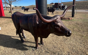 That concluded our sightseeing for the day and we decided to stop for lunch in Cisco, picking a place called “Muddy Mikes Bar & Grill.” I asked Kendall our waitress what the best thing was on the menu. She said their country fried steak was great and prepared in-house. I consider myself a connoisseur of what Texans normally call “chicken fried steak,” so I order that, with the brown gravy and a Shiner Bock draught. Bonnie got the double smash burger literally drenched in blue cheese sprinkles with a Shiner as well. That cheese is repulsive to me. I just can’t understand how she can eat it…