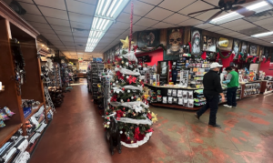In 2022, their Christmas display included a statue of a greyhound. It was destiny!