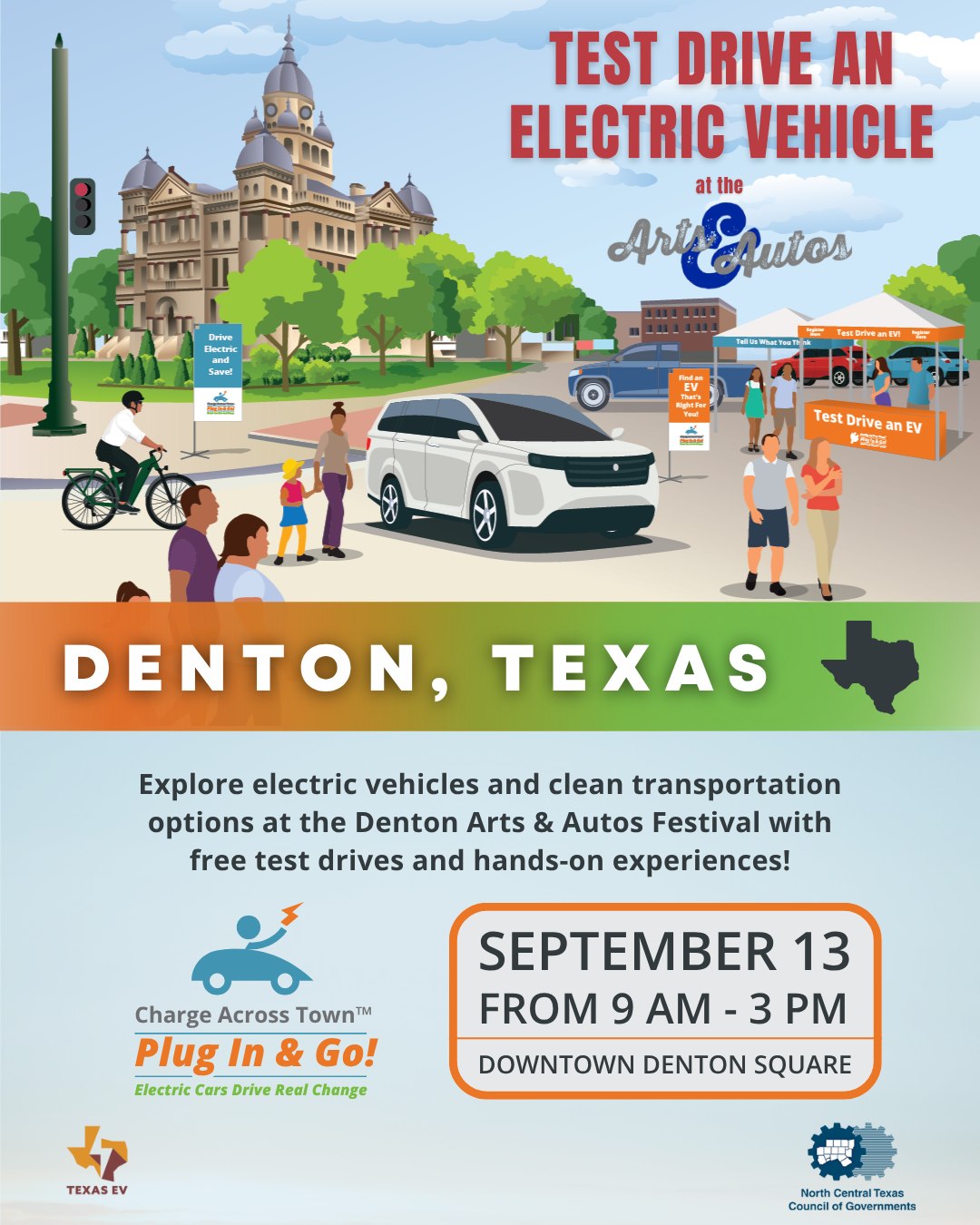 In the Electric Avenue display on Denton’s West Oak Street, you can explore the future of transportation from electric cars to innovative e-bikes and more. To help you get the full EV experience, we recruited local auto dealers to provide test drives of EVs on the streets of Denton.