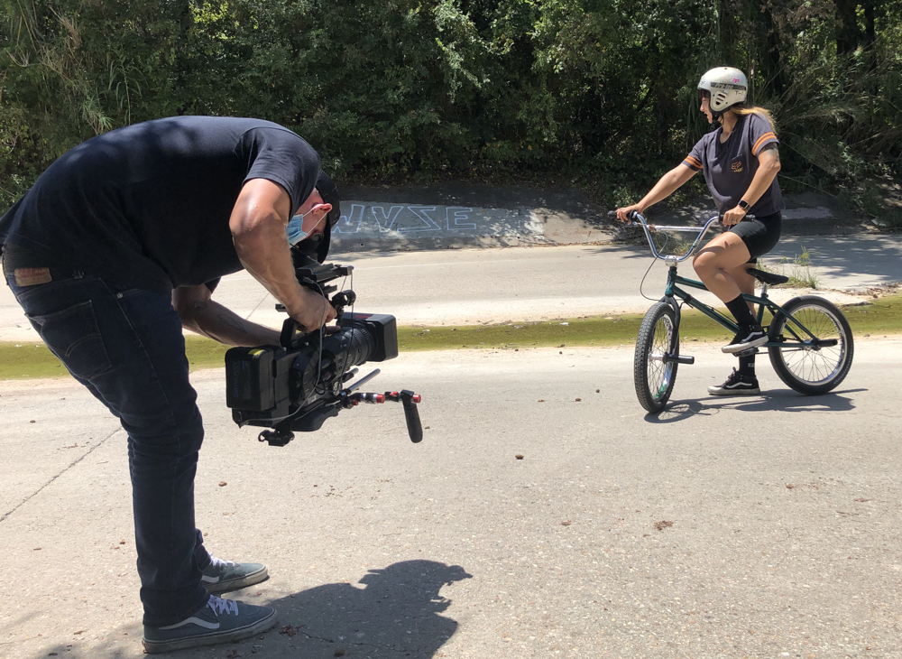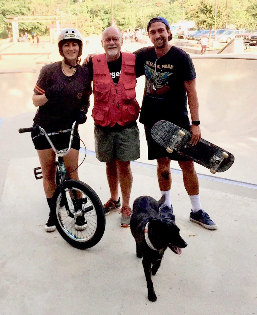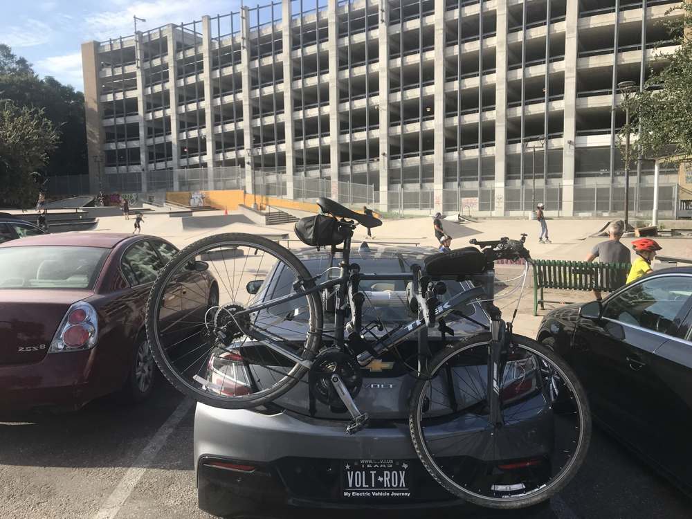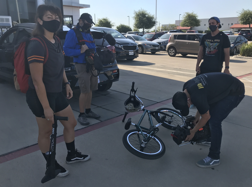 My mission, for the weekend of August 14-16, was to travel to Austin, Texas to be in a video with Nina Buitrago, a star in the BMX cycling world. Nina’s videos of her riding dazzle her fans with her skills, but she likes to throw in a little education about electric vehicles, to help spread awareness of them. In the case of this video project, I was to play the role of “EV Nerd” and answer any questions Nina, and her boyfriend Jeremy Rodriguez, might have. Jeremy is a skateboarder with a very cool dog named Jana.