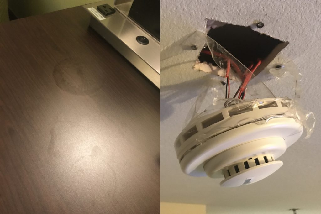 One last thing: I mentioned the hotel at which I stayed was a Fairfield Inn & Suites by Marriott. It had lots of signs, asking people to wear face masks and explaining all they do to sanitize the rooms between visitors. The evidence was to the contrary. Here’s a couple of photos of my room, taken right after I entered, for the first time: