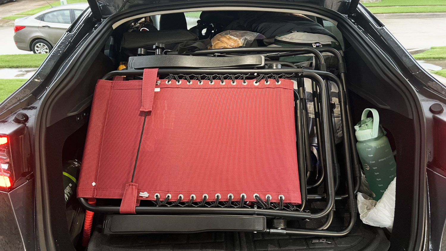 As you can see from the top photo above, the rain lightened up and Bonnie and I were able to drive to the Convention Center for the presentation. The Model Y was packed to the gills but held everything we wanted to take with us. Immediately after my presentation, we jumped in the Model Y and started our drive. I had decided to pay for a month of Full Self Driving capability for the car to help me avoid speed traps in smaller, rural towns. There had been a significant upgrade in the service, according to Elon Musk, after our eclipse drive. I had a few times that it suddenly swerved to take an exit, that wasn’t on the route it was navigating, or to the shoulder of the road. I couldn’t discern why it happened, but I kept my attention on it.