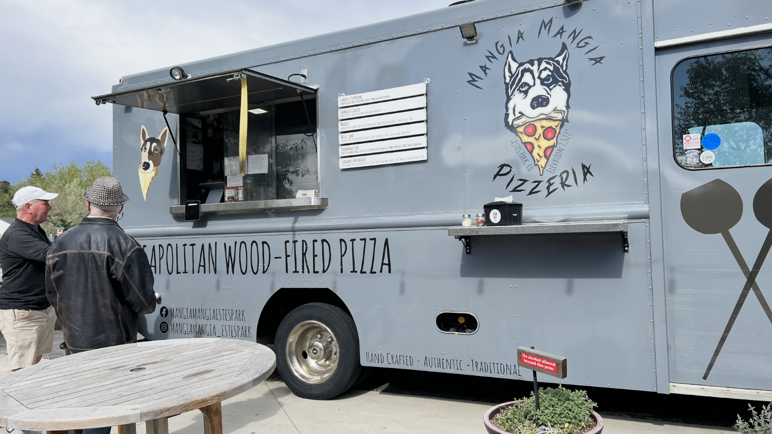 The bad weather bypassed Estes Park, so dining outdoors was a definite must for us and the truck was parked next to Avante Garde Aleworks a brewer of wonderful beers. Beer? Pizza? Nice evening weather? What more could we ask for?