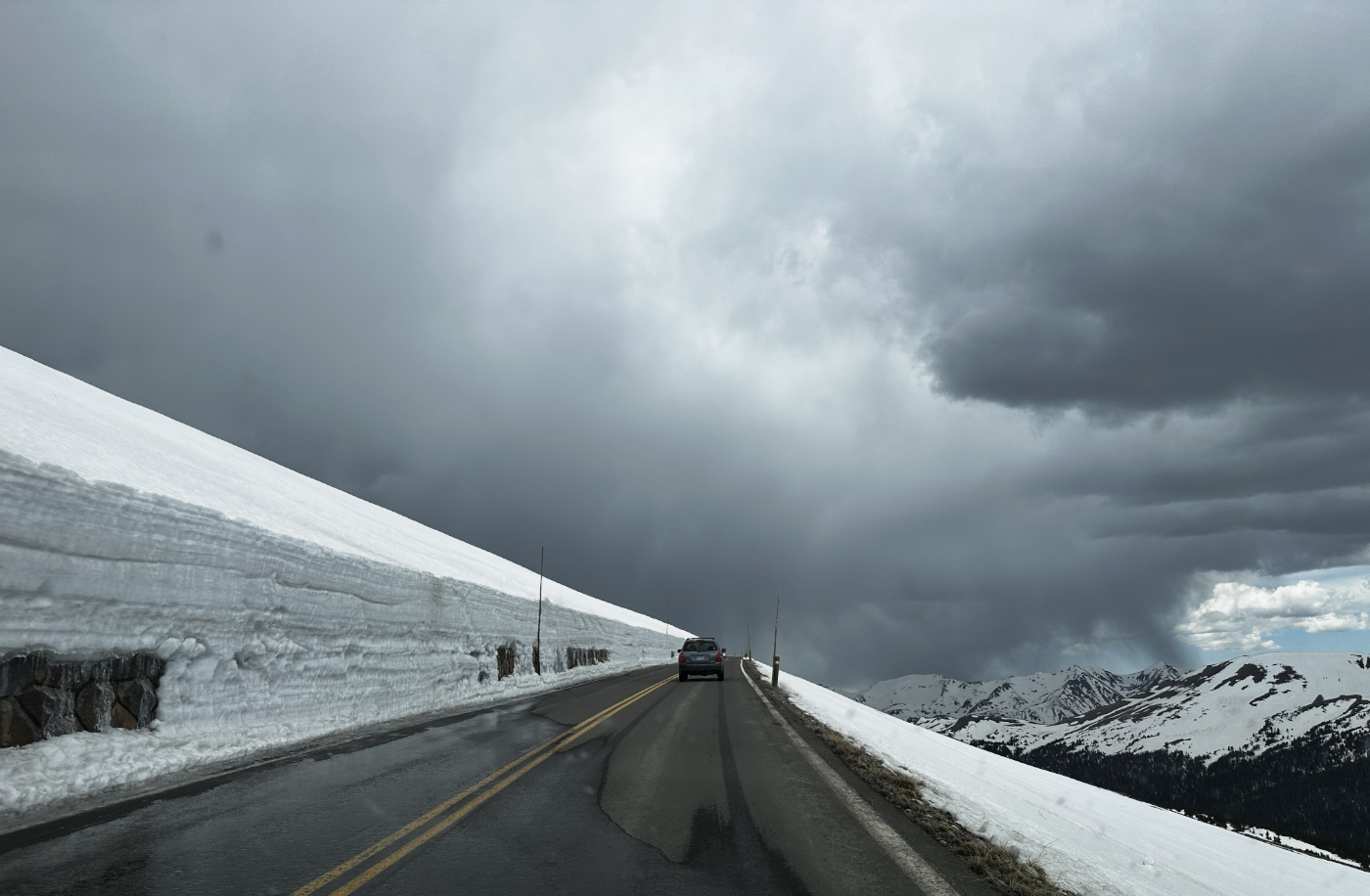 I had been telling Bonnie about seeing the road right after it had been opened, back when I was in elementary school. There were tall walls of snow next to the road, much taller than the vehicles driving next to them.