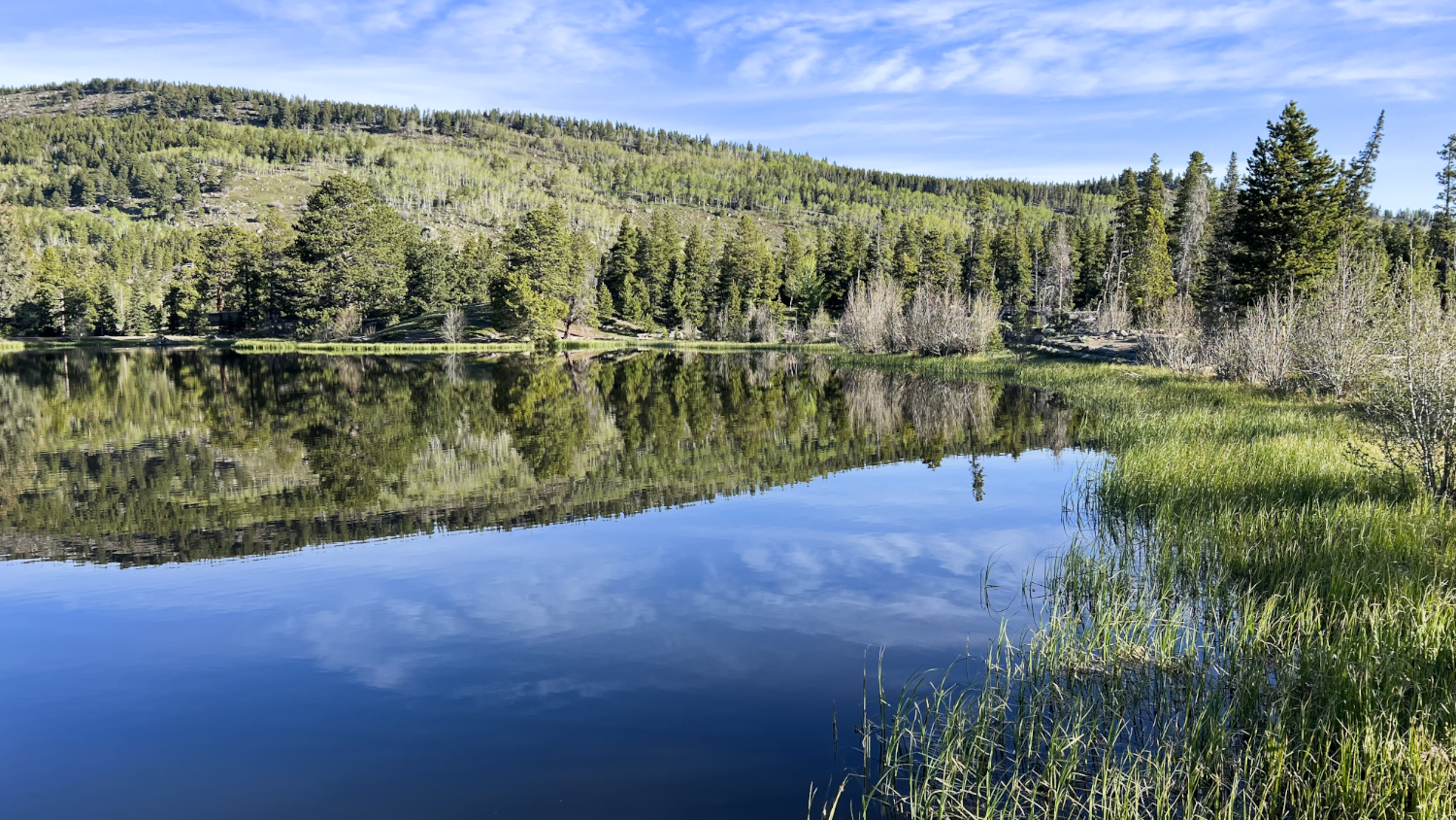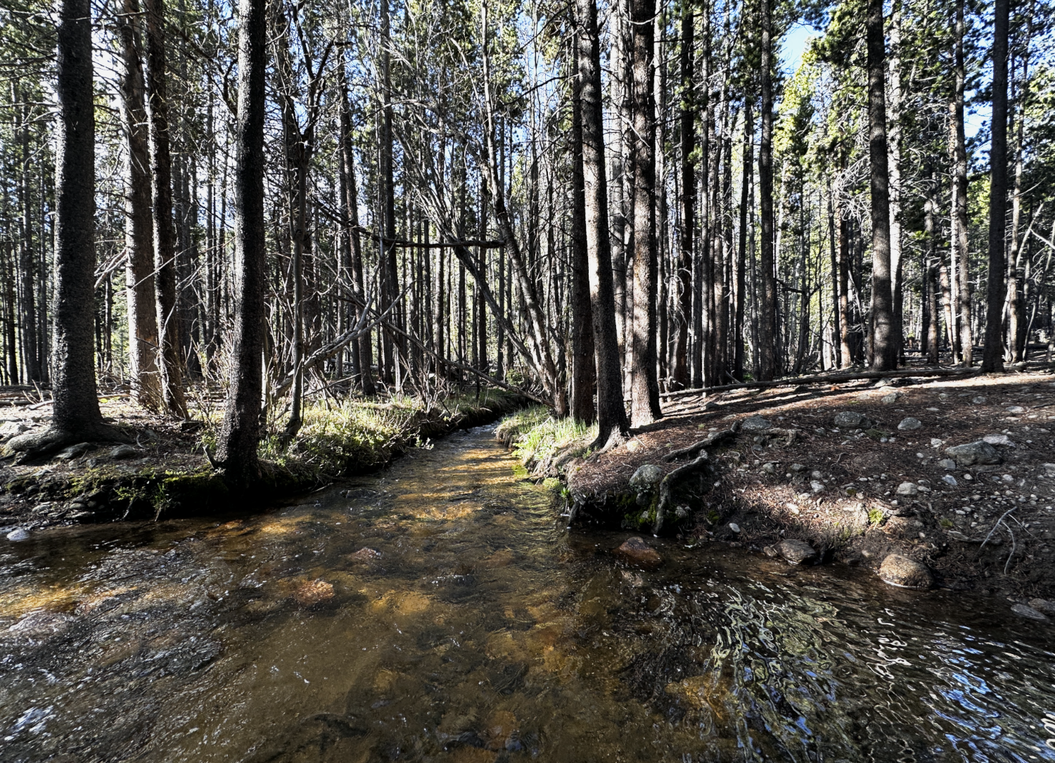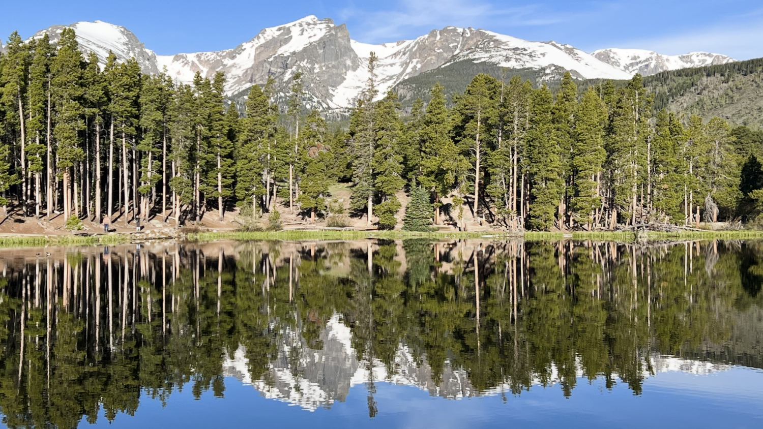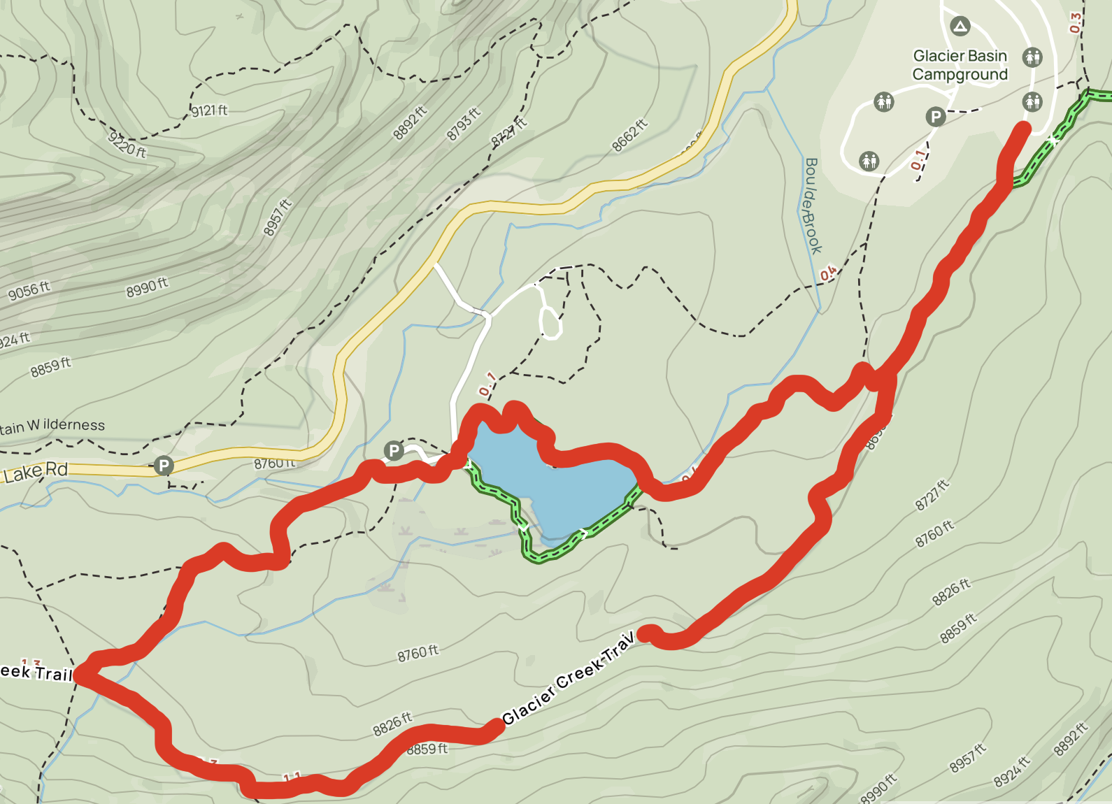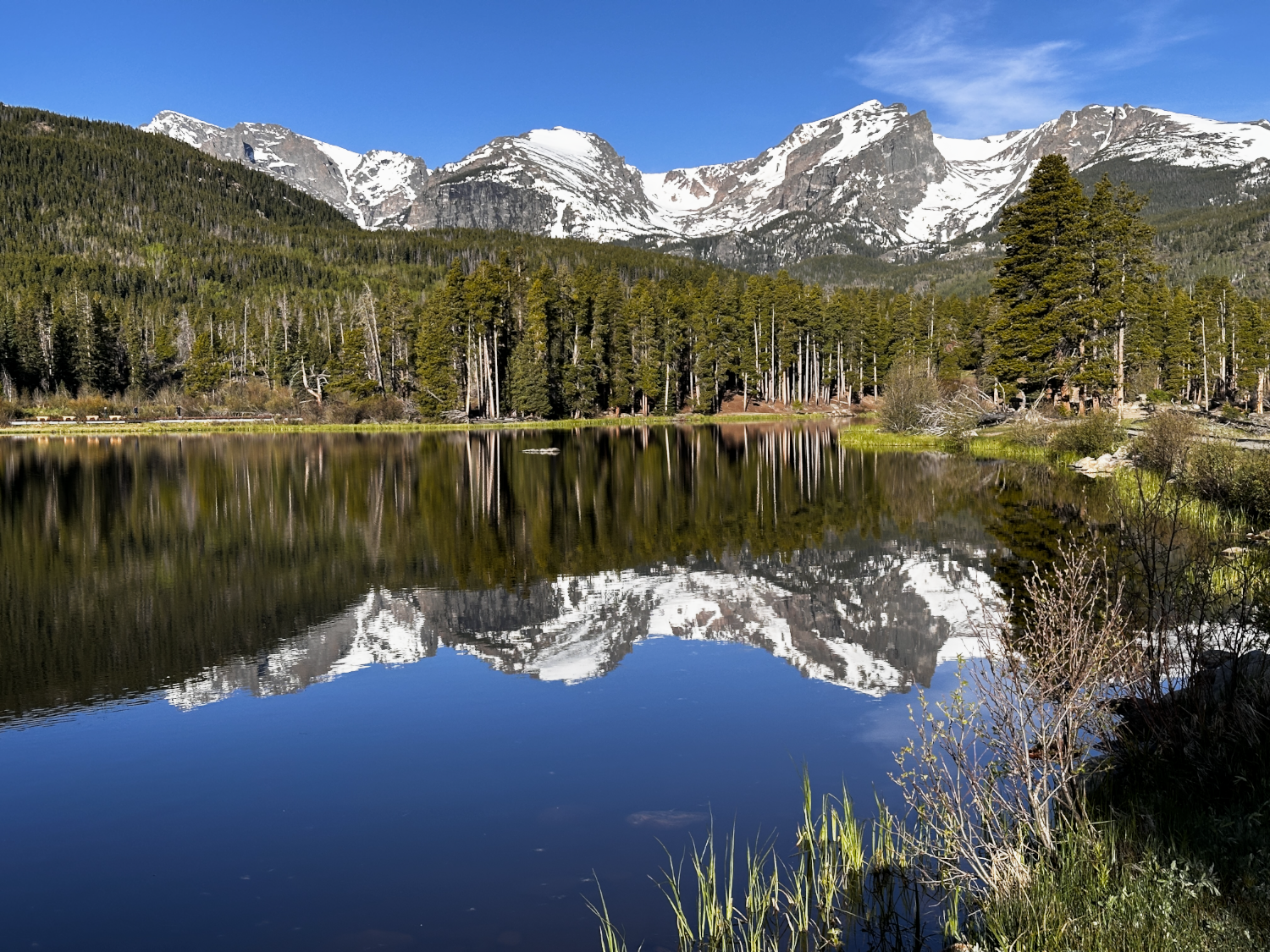 The last morning at camp was a bummer. We both wanted to stay another week. But, we had obligations and knew we had to go. We did want to take one last hike, so we got up earlier than usual and took the Glacier Creek trail to Sprague Lake and back. It was a relatively short, level hike and would have us back in time to tear down camp before the noon checkout time. The total distance walked was 3.5 miles.