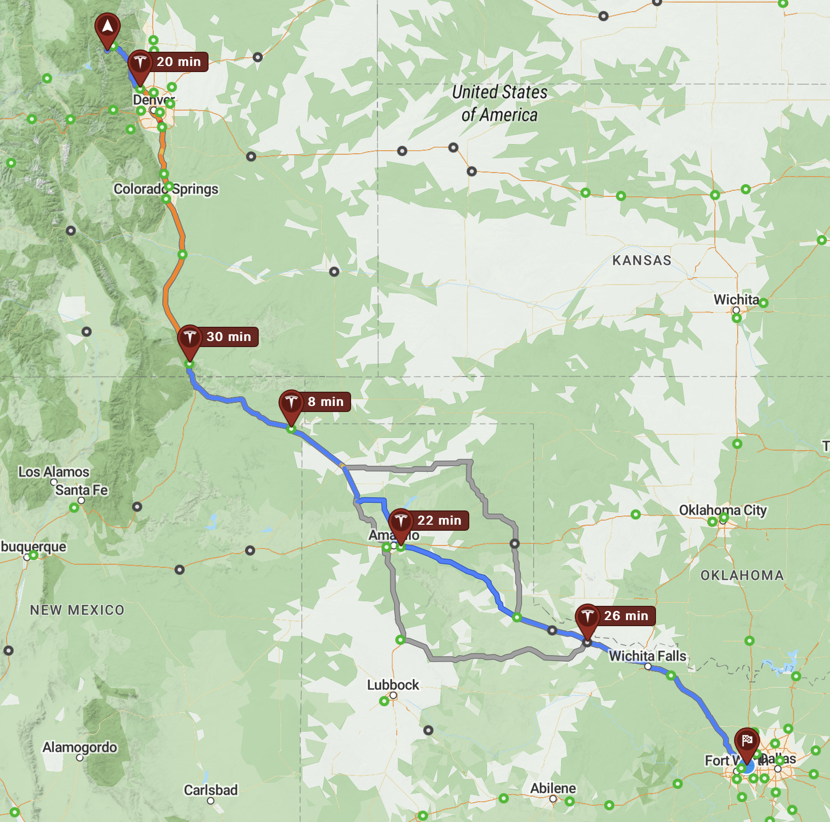 - Superior, CO. for a 20 minute charge so we wouldn’t have to charge in Colorado Springs or Pueblo,