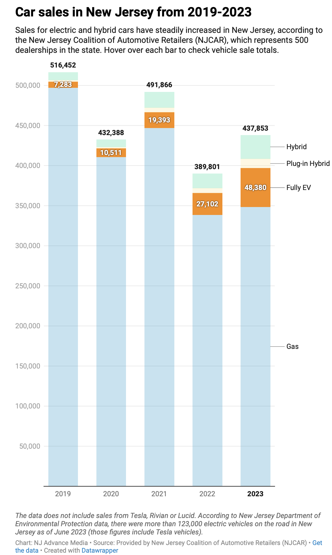8) “Atlas Public Policy, reports that the state had 123,774 registered electric vehicles as of June 2023. That’s still a far cry from benchmarks laid out by Murphy, including having 330,000 registered EVs in New Jersey by 2025.”